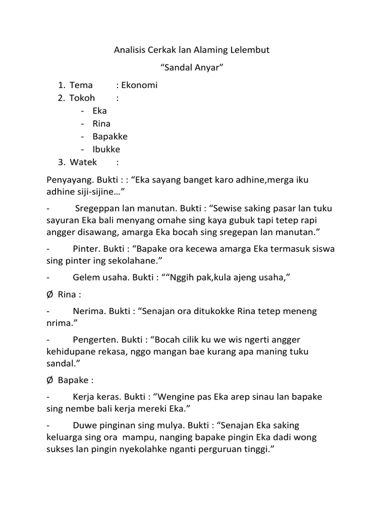 This research aims to reveal the Javanese belief about mysticism in the collection of cerkak Alaming Lelembut in Panjebar Semangat. Contoh cerpen tentang liburan. Dene genre jenis Cerita Cekak mau yaiku.