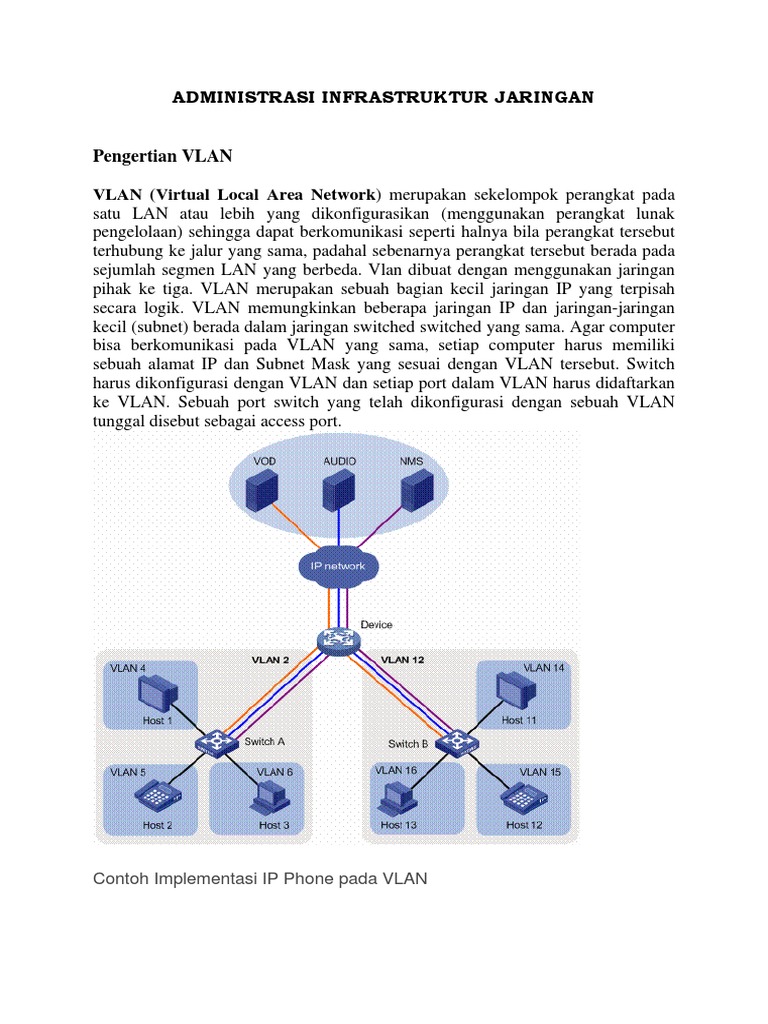 Memahami cara kerja VLAN serta 5. Tujuan Pembelajaran Infrastruktur Jaringan VLAN J. Administrasi Infrastruktur Jaringan adalah ilmu yang mempelajari tentang mengatur mengkonfigurasi dan memanajemen perangkat jaringan beserta layanan-layanan jaringan menggunakan sistem operasi khusus jaringan seperti RoS dan switch OS.